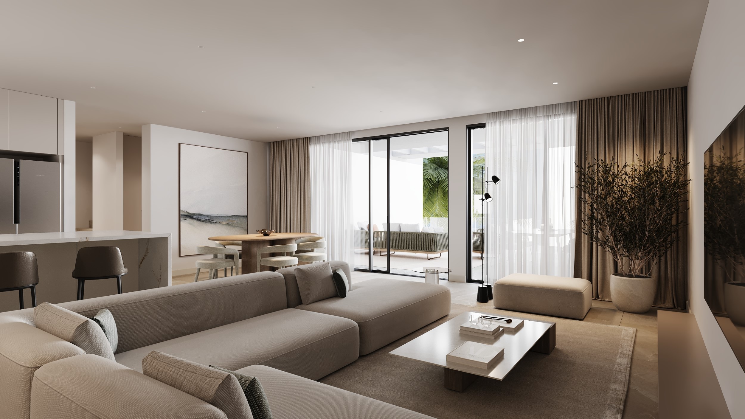 Discover these high-end 4 bedroom apartments in The New Golden Mile, Estepona, in an exclusive development. Boasting expansive layouts, floor-to-ceiling windows, and breathtaking sea views, these apartments redefine luxury living in an unmatched location. Crafted by the renowned studio VILLARROEL, every detail, from the finishes to the thoughtful design, has been meticulously planned to create your private oasis of tranquility and sophistication.