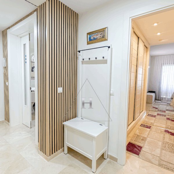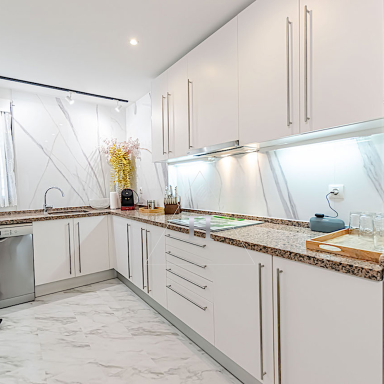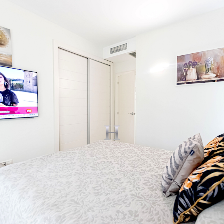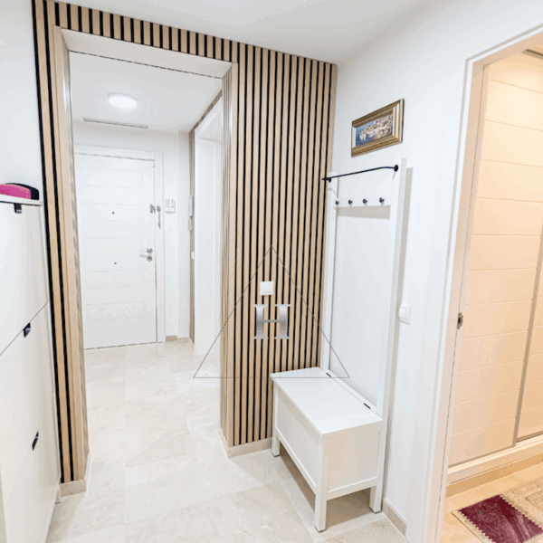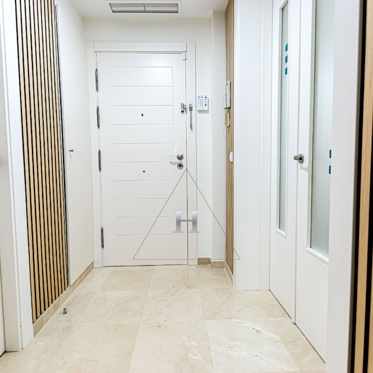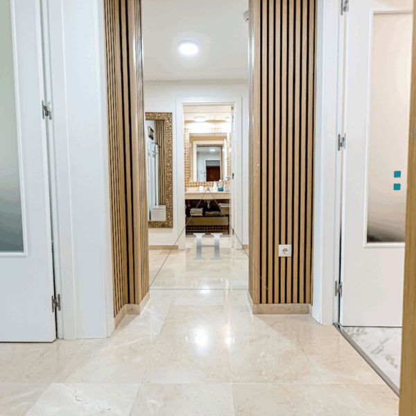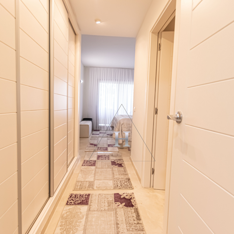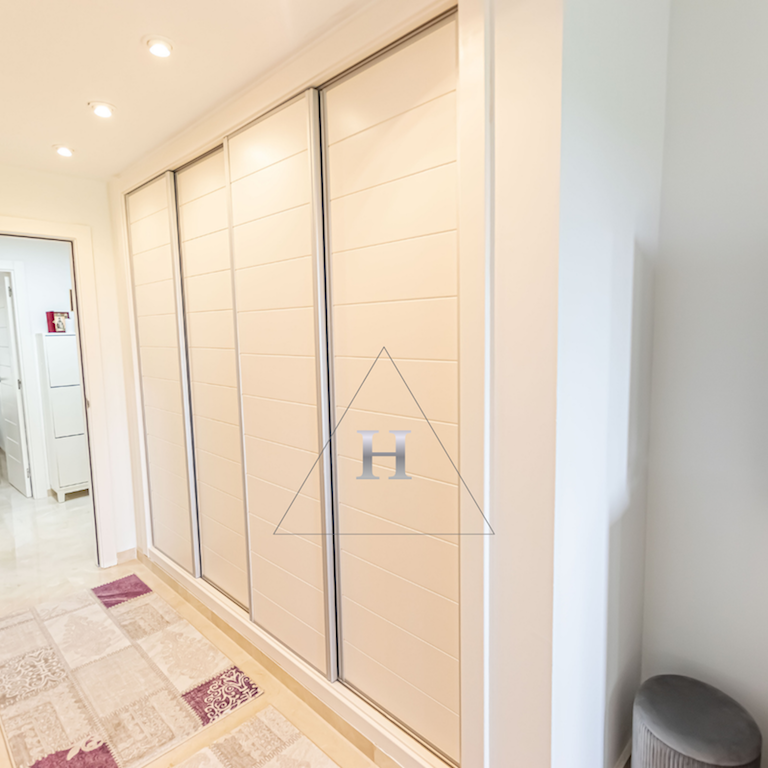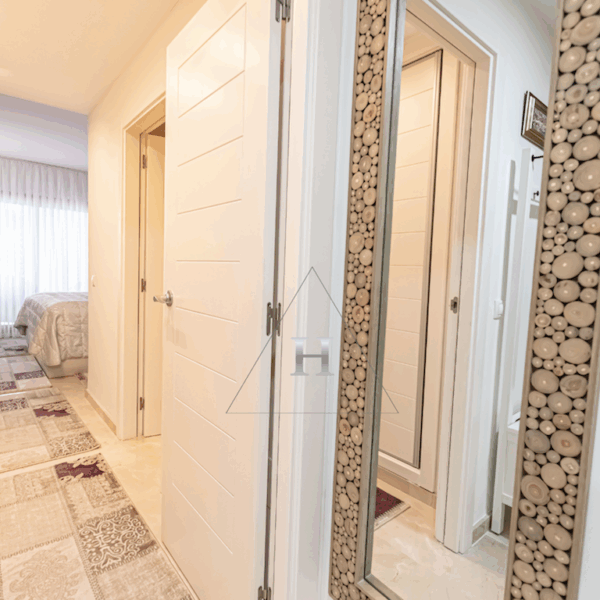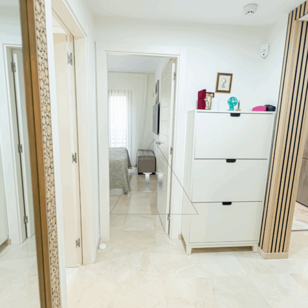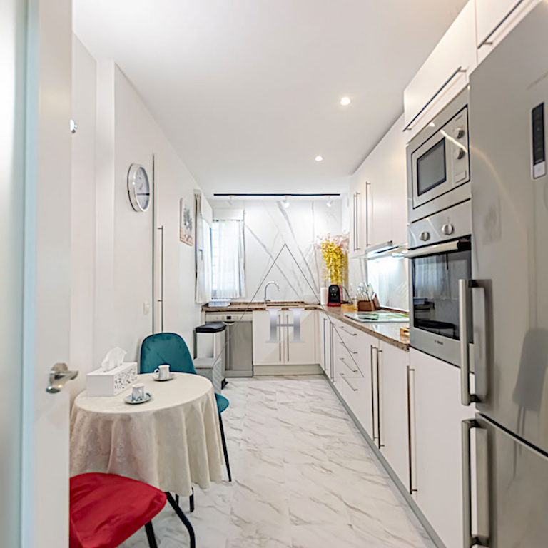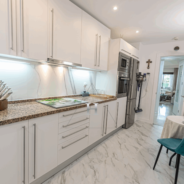La propriété offre une grande terrasse avec une fermeture vitrée panoramique, parfaite pour profiter de la lumière naturelle tout au long de l’année et la transformer en un espace polyvalent pour se détendre ou recevoir des invités. Elle dispose de deux chambres, toutes deux de bonne taille, et de deux salles de bains complètes, ainsi que d’un salon spacieux et accueillant. La cuisine indépendante, entièrement meublée et équipée, dispose d’un espace spécifique pour la machine à laver et le sèche-linge, ce qui la rend encore plus fonctionnelle.