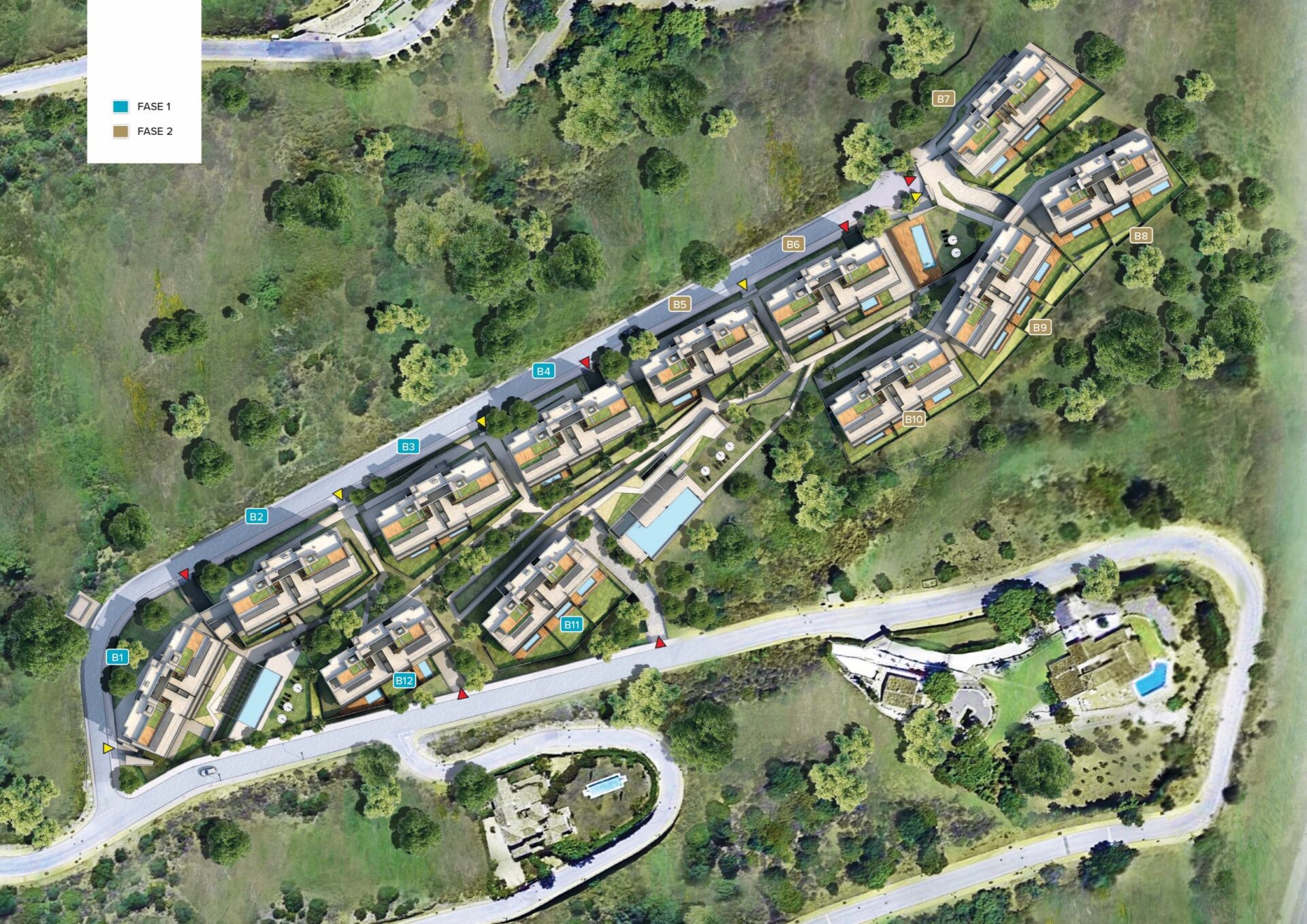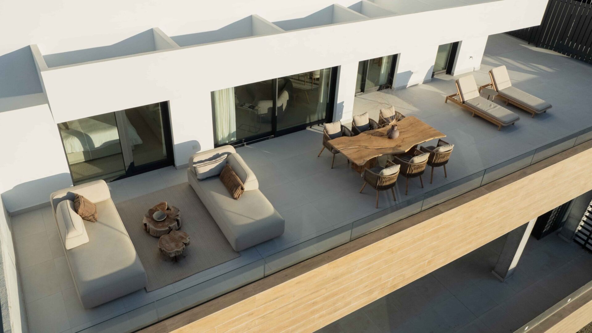 The project is structured into 12 buildings, offering a variety of home types including ground floor residences with gardens and pools, and penthouses with the option of adding mini swimming pools. The first phase encompasses residential units, communal areas, and landscaped gardens spanning over 20,000 m2, filled with Mediterranean flora. The development emphasizes design and quality finishes, promoting a lifestyle that encourages health and well-being. Amenities include a pool with breathtaking views, a spa, fitness facilities, a coworking space, and social areas for relaxation and enjoyment.