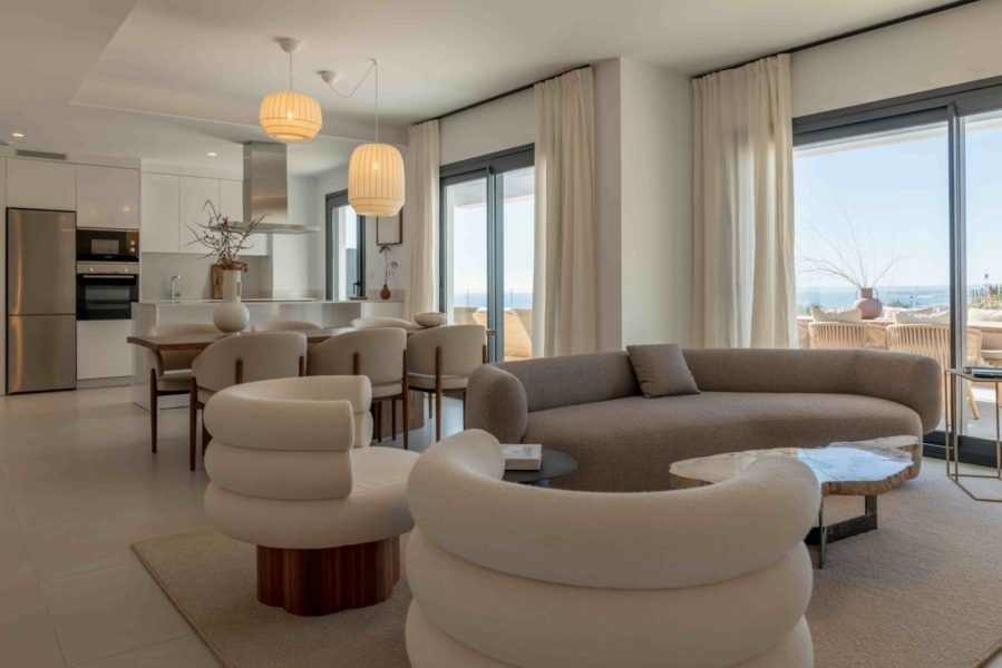 Discover a premium residential development in Marbella, consisting of 96 apartments and penthouses designed with a resort-inspired spirit. Each home is surrounded by scenic nature and boasts stunning views of the Mediterranean, allowing for an exceptional quality of life enhanced by exclusive leisure and wellness amenities. The penthouses feature spacious terraces and private solariums with jacuzzis, perfect for outdoor living and enjoying spectacular sunsets. They include 3 bedrooms and 2 bathrooms, optimized for comfort and privacy while remaining close to Marbella’s town center and beaches.