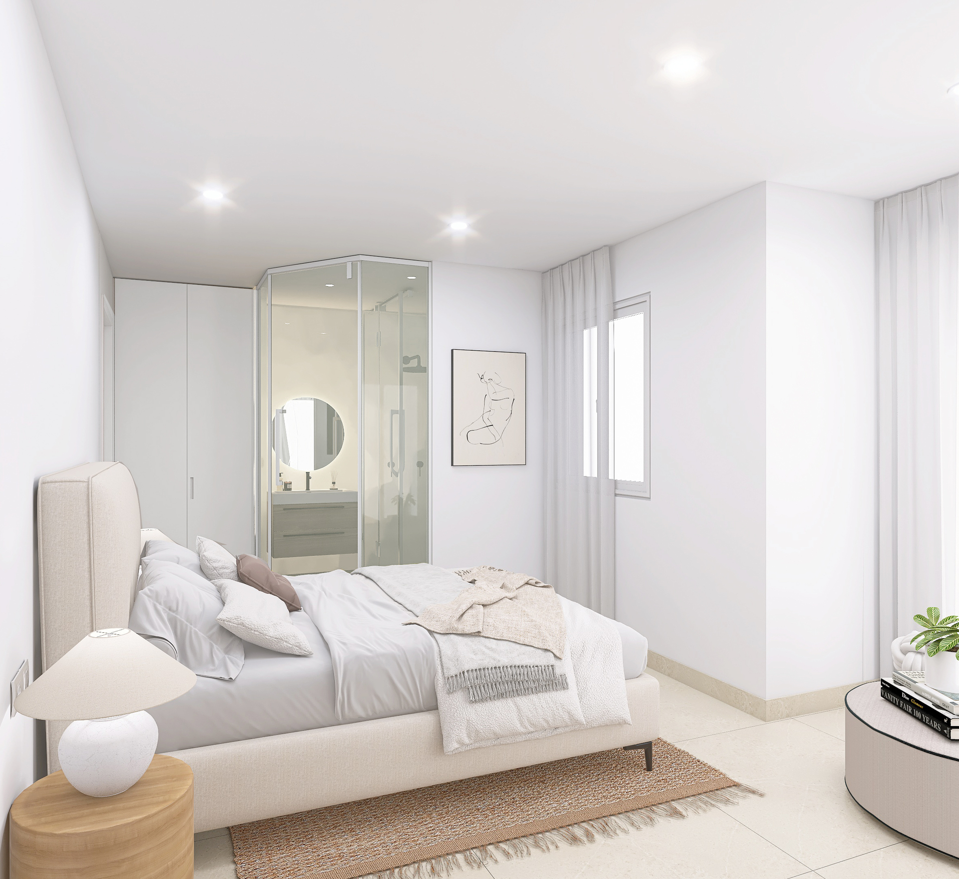 The outdoor areas of these townhouses in Bigastro are designed to maximize enjoyment of the Mediterranean climate. Each property features a private garden, ideal for creating a personalized green space or enjoying outdoor moments. Additionally, the option of a private pool adds a touch of luxury, allowing for refreshing dips on the hottest days. The spacious terraces are perfect for relaxing or hosting gatherings with friends and family, while the solarium offers additional space for sunbathing or enjoying the views.