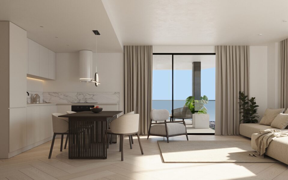 The interior of the homes in this residential complex in Calpe is designed to offer maximum comfort and functionality. The apartments and penthouses are available in 2 and 3-bedroom configurations, all with 2 bathrooms, providing adequate space for families or couples. The homes feature air conditioning to maintain a pleasant temperature throughout the year. Integrated home automation allows efficient control of home functions, enhancing comfort and security. High-quality appliances are included, ensuring each kitchen is ready for use from day one. Built-in wardrobes offer practical and efficient storage, while electric shutters and a video intercom add an additional level of security and comfort.