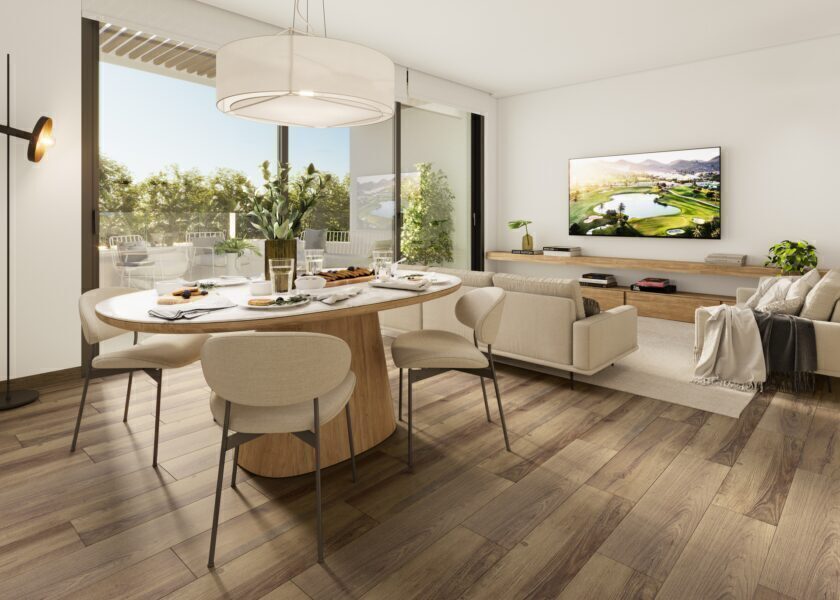 The interior of the homes is characterized by its contemporary and functional design. With options of 2 and 3 bedrooms and 2 bathrooms, each space is optimized to offer comfort and efficiency. Porcelain tile floors add a touch of elegance and durability. Built-in wardrobes offer ample storage space, maintaining order and aesthetics. The garage option, available depending on the typology, adds convenience and security to daily life. The integration of home automation systems allows for easy and efficient control of various aspects of the home.