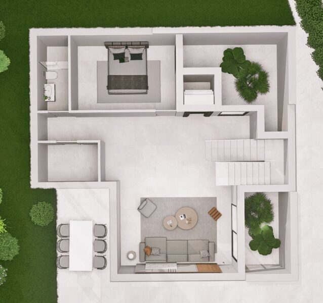The exteriors of these homes in Finestrat are designed to offer an exceptional outdoor lifestyle. Each property features a private garden, ideal for enjoying moments of tranquility or hosting outdoor gatherings. The terrace is perfect for relaxing while gazing at the horizon. Additionally, each home has a solarium, an exclusive space to enjoy the sun in total privacy. The presence of a private pool adds a touch of luxury, allowing you to cool off on the hottest days. The garden and pool harmoniously integrate with the surroundings, creating a personal oasis.