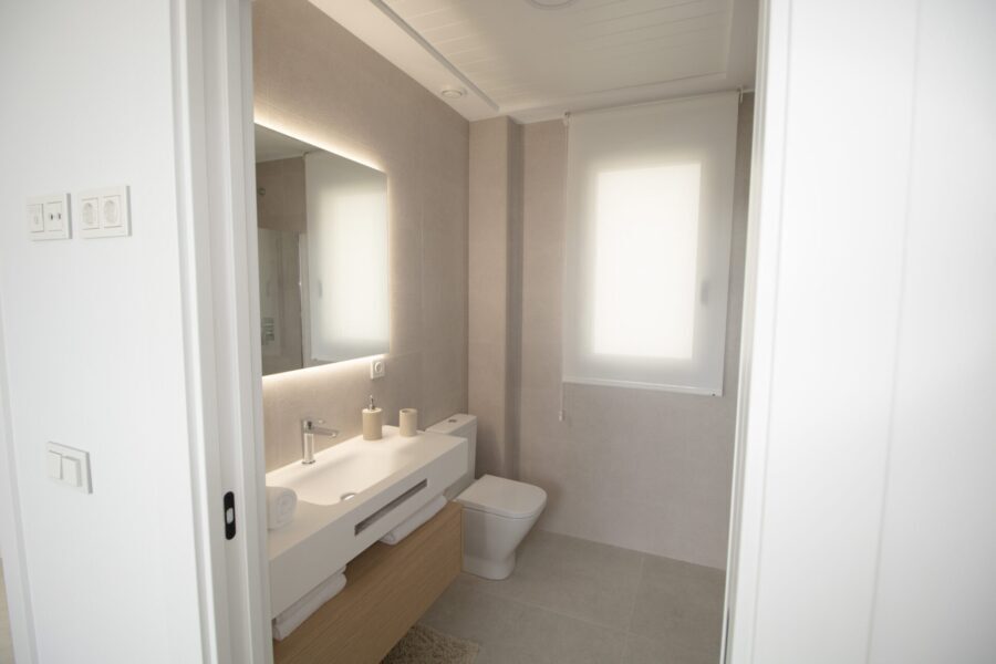The interior of these detached homes in Finestrat is designed to offer maximum comfort and functionality. With a layout that includes three bedrooms and three bathrooms, each space is optimized for the well-being of its residents. Ceramic floors add a modern touch and are easy to maintain. The kitchen is equipped with high-end appliances, and the home automation system allows for easy control of various aspects of the home. Electric shutters and air conditioning ensure a comfortable environment at any time of the year. Built-in wardrobes offer ample storage space, while the video intercom adds an extra level of security.