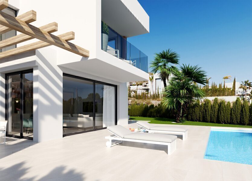 The outdoor areas of these properties in Finestrat are designed to maximize enjoyment of the natural surroundings. Each home features a private garden, perfect for outdoor activities and relaxation. The spacious terraces offer additional space to enjoy the sea views and Mediterranean climate. Additionally, each property is equipped with a private pool, ideal for cooling off during hot summer days. The presence of pergolas adds a touch of elegance and functionality, providing shade and a cozy space for outdoor gatherings.