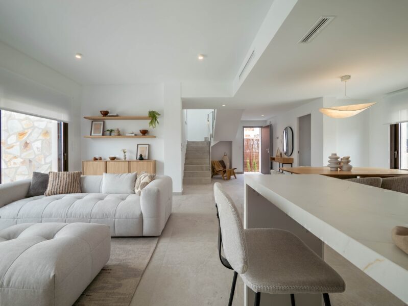 The exterior of these independent homes is simply spectacular. Each property boasts a private garden, perfect for enjoying the Mediterranean climate. Additionally, they feature a terrace and a solarium, offering multiple spaces for outdoor relaxation and entertainment. The crown jewel is the private pool, adding a touch of luxury and exclusivity to each home. Electric shutters and the home automation system ensure comfort and energy efficiency.