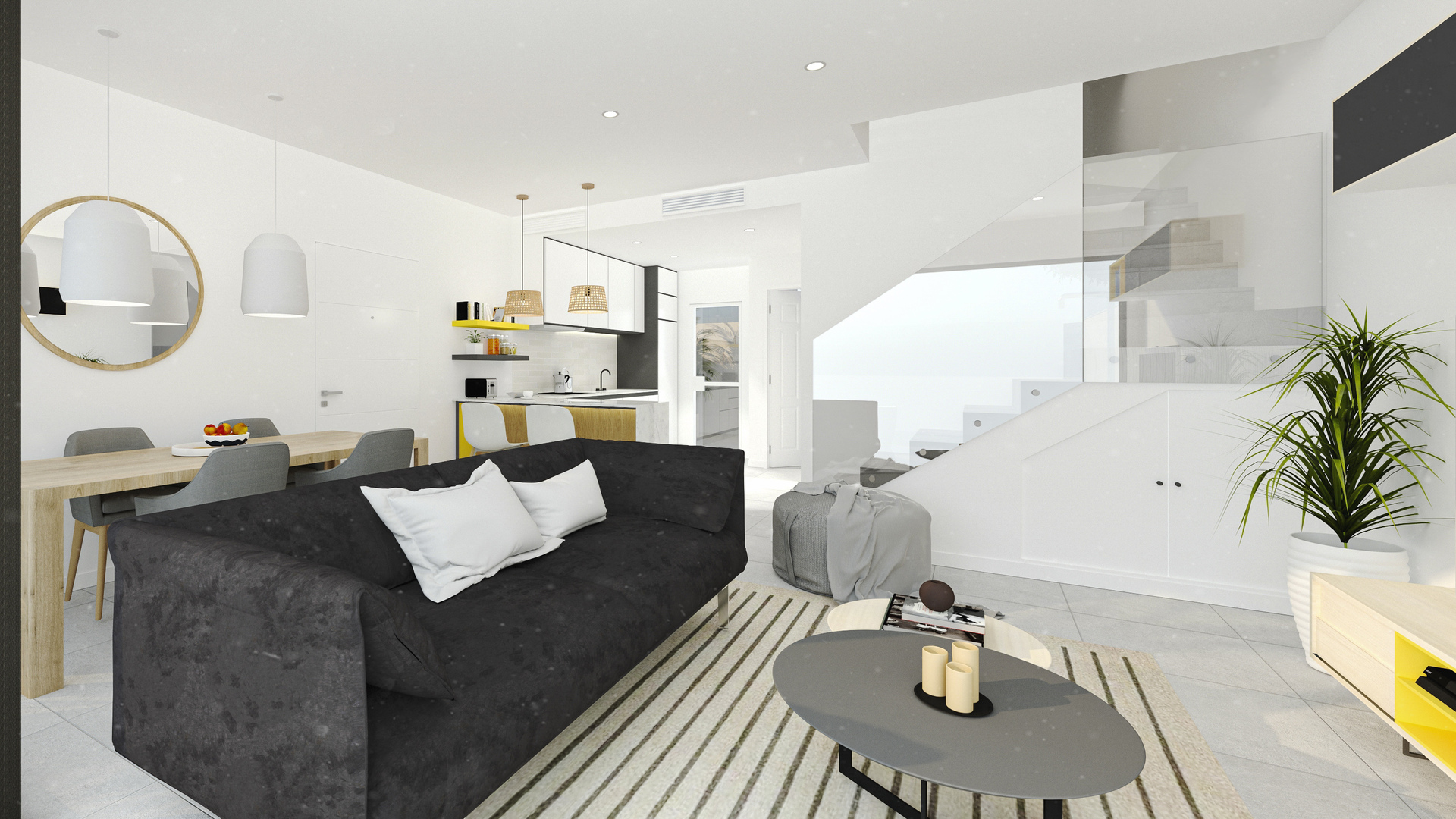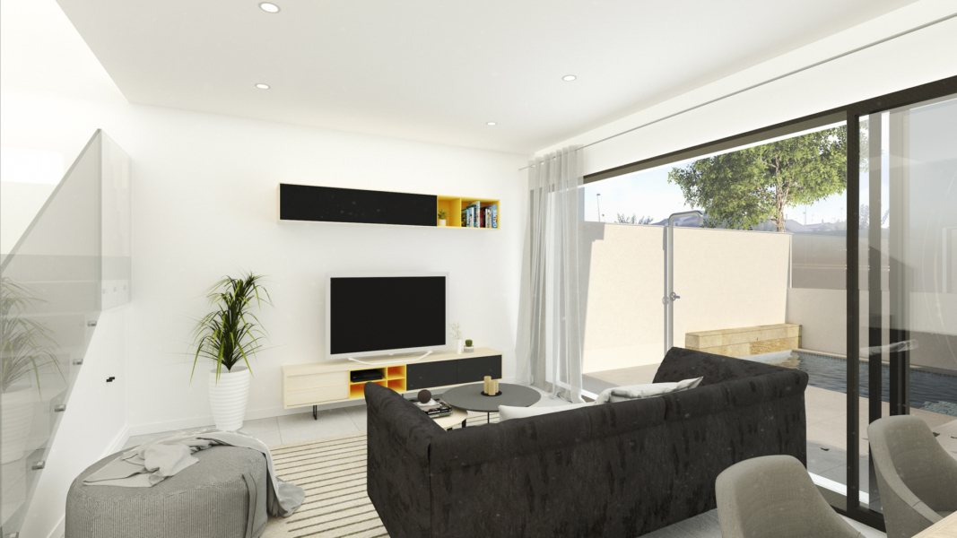 The interior of these homes has been carefully designed to offer a welcoming and modern environment. With three bedrooms and three bathrooms, each property is equipped to meet the needs of families or couples seeking space and comfort. Ceramic and porcelain tile floors add a touch of sophistication and are easy to maintain. The homes come fully furnished, ready to move in, and equipped with high-quality appliances. The air conditioning system, along with additional pre-installation, ensures a perfect climate throughout the year. Electric shutters and the video intercom add an extra level of comfort and security. Built-in wardrobes offer efficient storage, keeping spaces tidy and uncluttered.