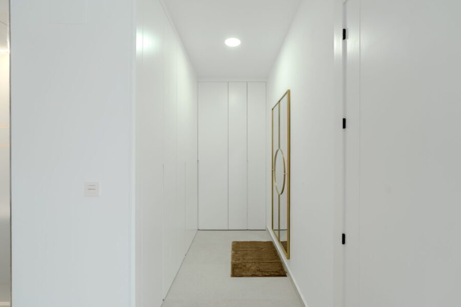 The exteriors of these townhouses are designed to maximize enjoyment of the Mediterranean climate. Each home features a private garden, ideal for creating a personal green space or enjoying outdoor moments. The spacious terraces offer a perfect place to relax, sunbathe, or enjoy outdoor meals. Additionally, each townhouse includes a solarium, providing extra space to enjoy the views and sunny weather year-round. The presence of a garage ensures convenience and security for vehicle parking.