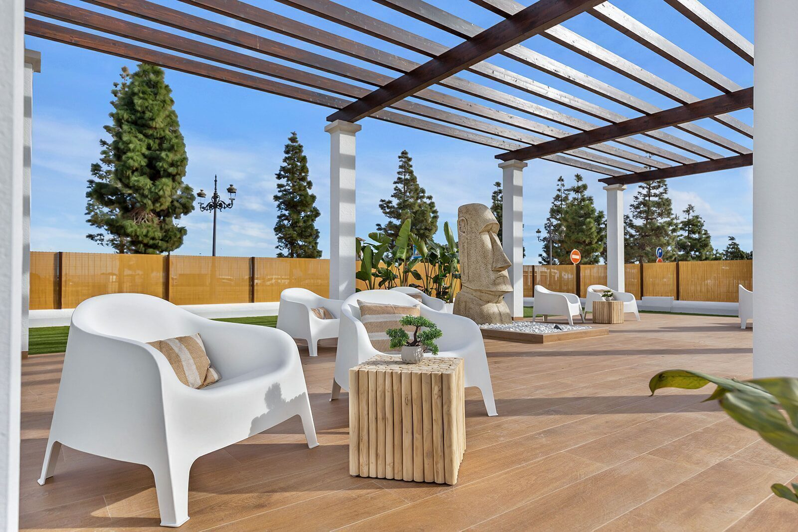 The exteriors of this residential complex are designed to complement the natural surroundings of Los Alcázares. The homes feature private terraces, perfect for enjoying the Mediterranean climate and surrounding views. Additionally, some properties offer the option of a solarium, providing extra outdoor space for relaxation or socializing. The communal gardens are carefully maintained, offering a green space where residents can enjoy the tranquility and beauty of the landscape. The proximity to the sea, just 1 km away, allows for coastal walks and water activities.