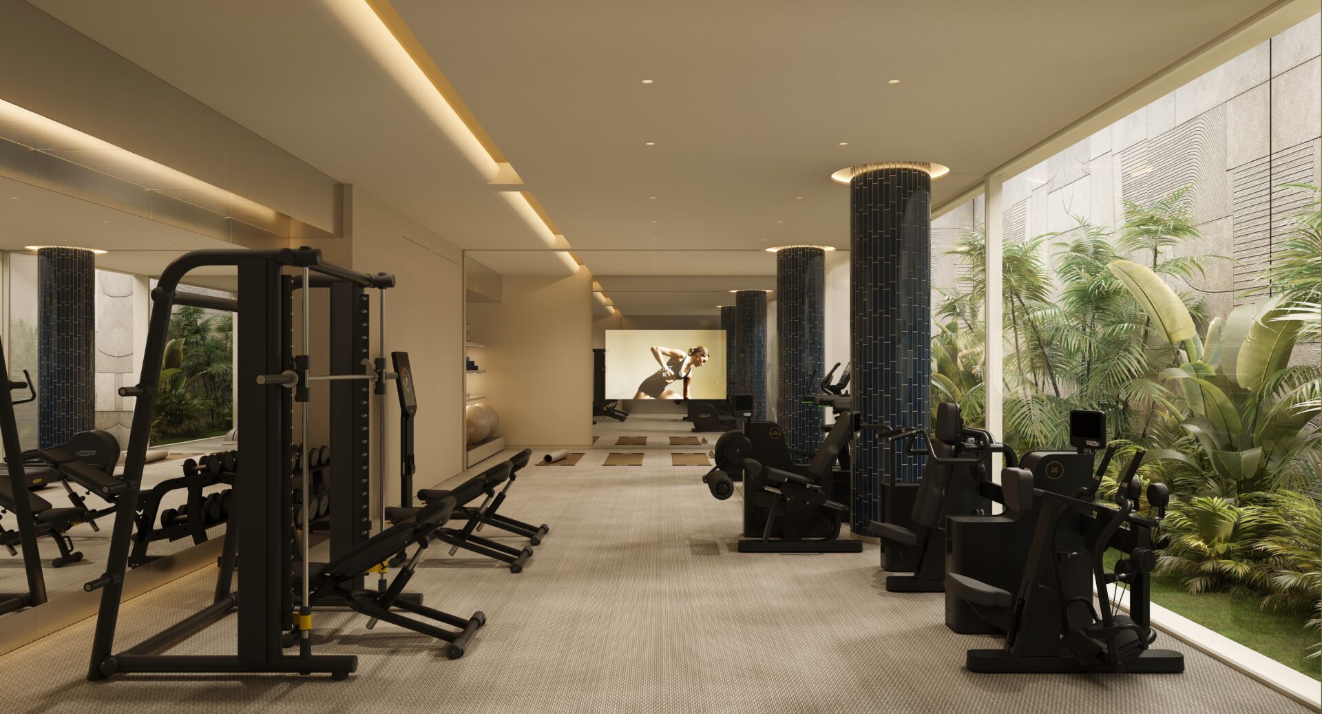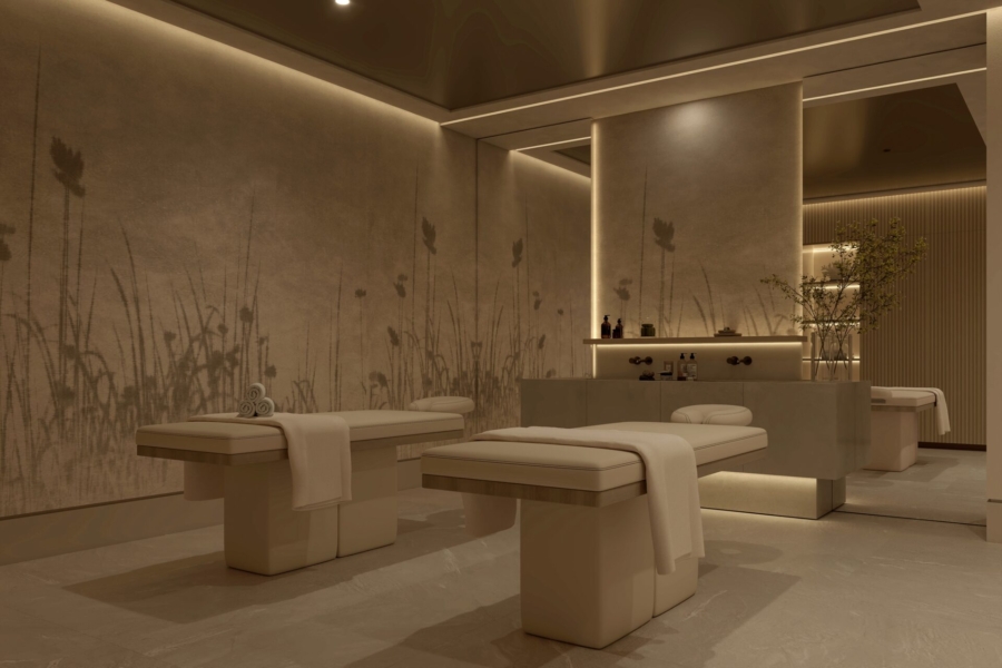 Residents enjoy access to an exceptional collection of amenities designed to elevate wellbeing, including a state-of-the-art spa, indoor heated pool, massage and beauty rooms, a fully equipped high-tech gym, and a dedicated flex space. Social and leisure spaces include an elegant owners’ lounge and bar, as well as a stunning sky pool and rooftop lounge with panoramic views, all surrounded by beautifully landscaped gardens.