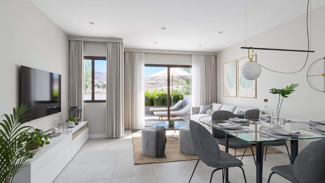 The townhouses feature outdoor spaces that invite relaxation and enjoyment of the Mediterranean climate. Each home has a private terrace, perfect for outdoor dining or simply relaxing in the sun. Additionally, the solarium offers extra space for sunbathing in complete privacy. The proximity to the sea, just 1 km away, allows for coastal walks and water activities, making the setting ideal for sea lovers.