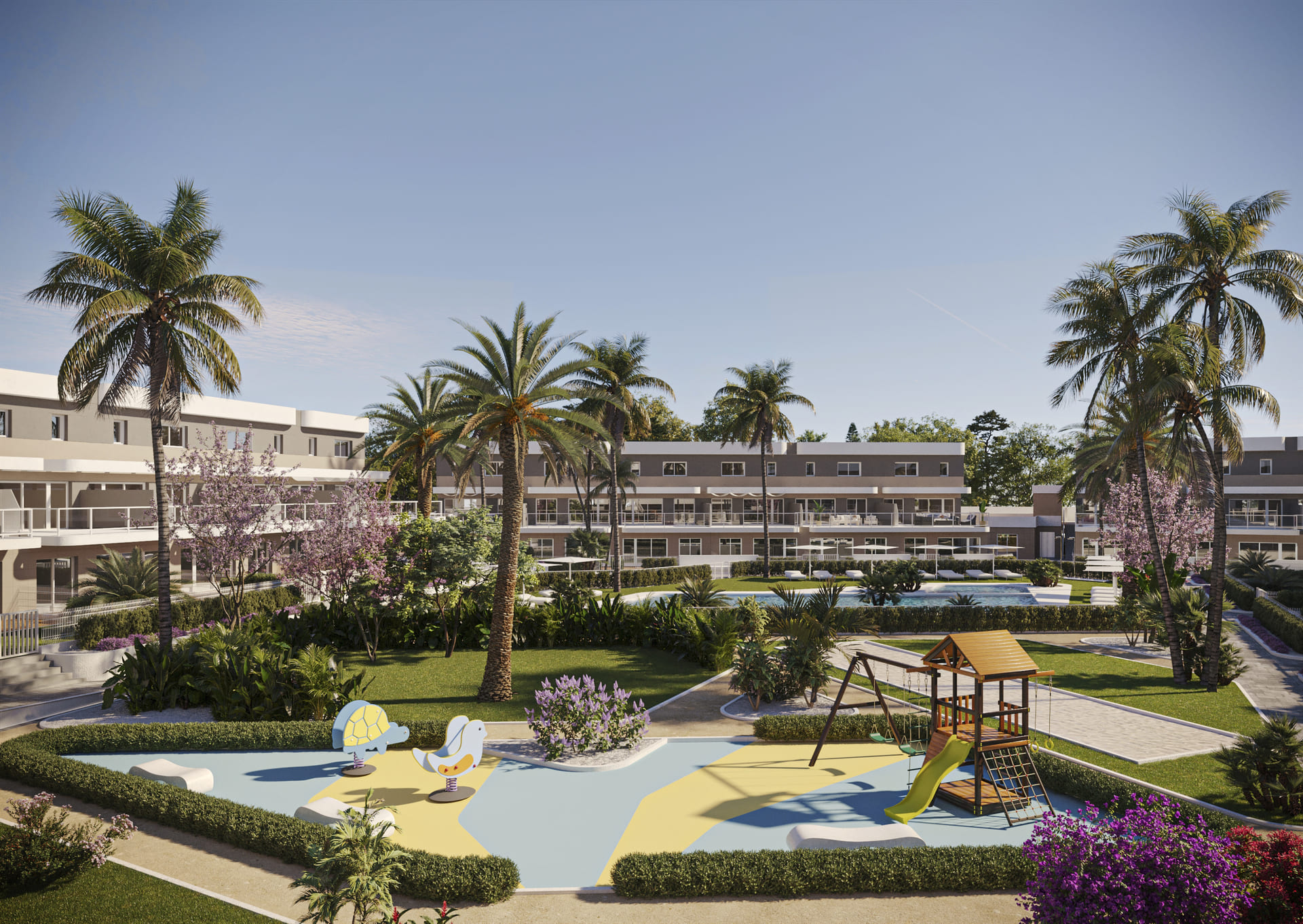 Located in Monforte del Cid, this residential complex offers a variety of housing options that cater to different needs and preferences. With a total of 70 units available, future residents can choose from apartments, ground floors, and bungalows. This typological diversity allows for finding the ideal home, whether for families, couples, or individuals seeking a quiet and well-connected environment. The location is privileged, with the golf course just 0.5 km away, making it a perfect option for golf enthusiasts. Additionally, the airport is 21 km away, facilitating international travel. The homes are designed to offer comfort and functionality, with options of 2 or 3 bedrooms and 2 bathrooms, ideal for accommodating different lifestyles.