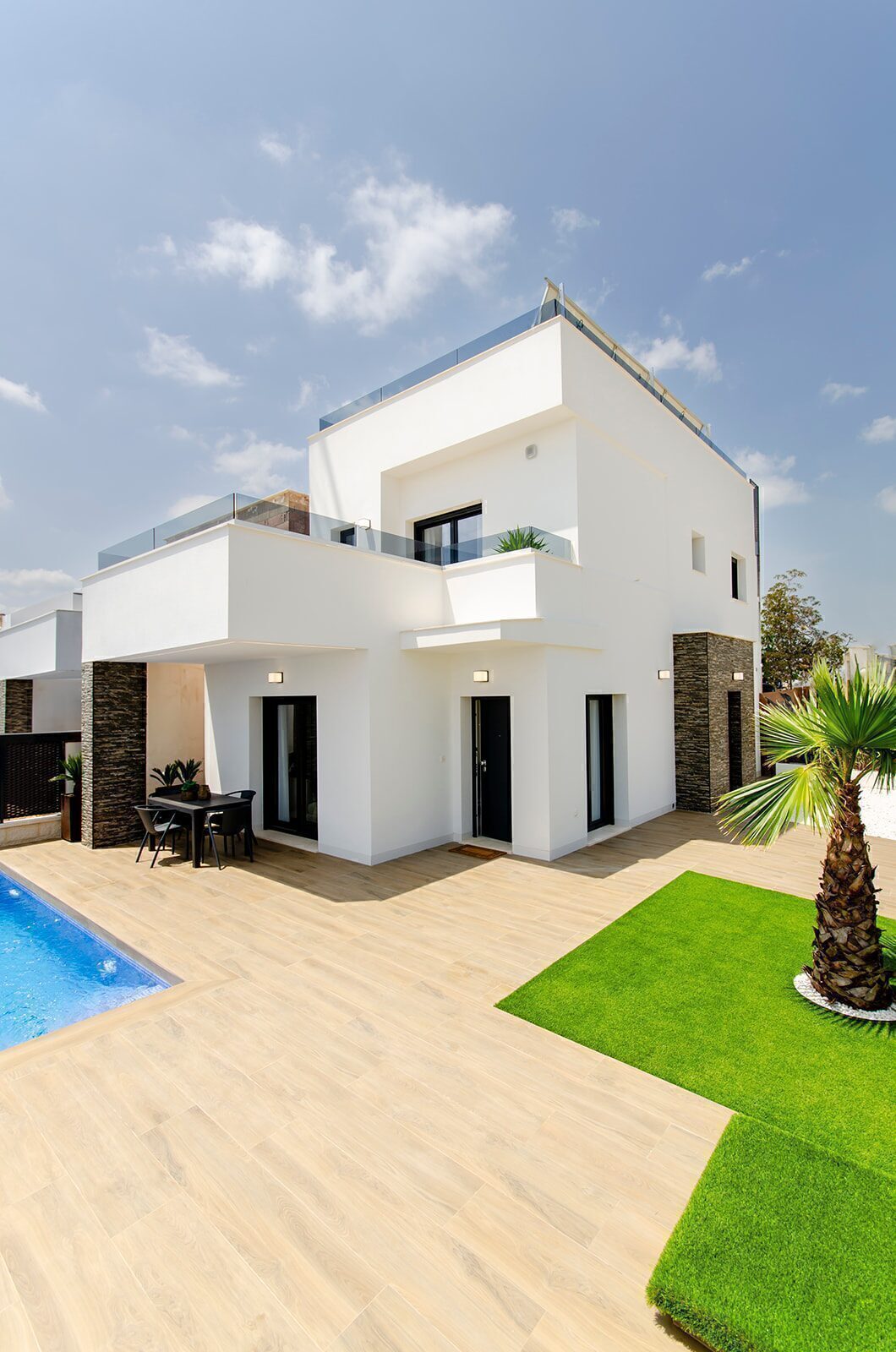 The outdoors of these detached homes in Orihuela are designed to maximize enjoyment of the surroundings. Each property features a private garden, ideal for creating a personal oasis of tranquility. The terraces offer additional space for relaxation or entertaining guests, while the option of a solarium allows for panoramic views and sun enjoyment all year round. Additionally, each home has a private pool, perfect for cooling off on hot days. The inclusion of a pergola adds a touch of elegance and functionality, providing shade and style to outdoor spaces.