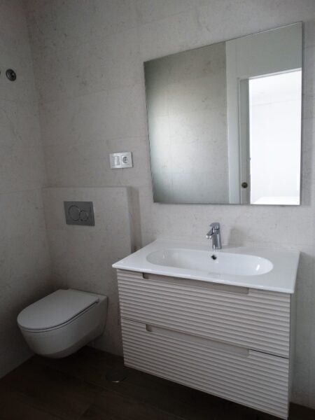 The interiors of these townhouses have been designed with comfort and style in mind. With three bedrooms and three bathrooms, each home offers a spacious and functional space for the whole family. Built-in wardrobes provide efficient storage, maintaining order and organization in the home. The kitchen is equipped with modern appliances, facilitating daily tasks. Additionally, the air conditioning system, along with additional pre-installation, ensures a pleasant environment throughout the year. High-quality finishes and contemporary design create a cozy and elegant atmosphere.