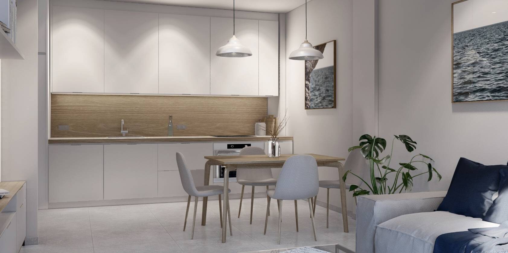 The outdoor spaces of this residential complex in Torre-Pacheco are designed to maximize enjoyment of the Mediterranean climate. All properties feature terraces, perfect for relaxing outdoors and enjoying the surrounding views. Additionally, the penthouses have a solarium, providing additional space for leisure and relaxation. The community also offers access to a garage, ensuring convenience and security for residents’ vehicles. The proximity to the airport, just 25 km away, adds significant value for those who travel frequently.