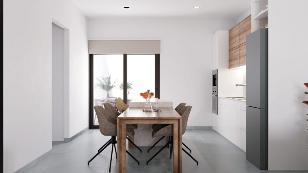 Located in the charming town of Torre-Pacheco, this residential complex offers 16 townhouses designed to provide comfort and functionality. Each home has been carefully planned to meet modern needs, integrating features that guarantee a pleasant living experience. The proximity to the airport, just 18 km away, adds significant value, facilitating travel and connectivity. The townhouse typology ensures a community environment, ideal for families or couples seeking a home in a quiet yet well-connected area.