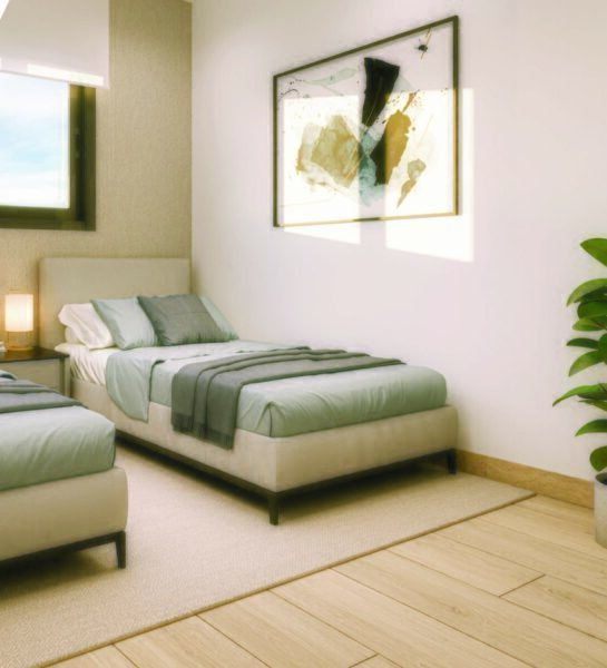 The exteriors of these homes are designed to maximize enjoyment of the Mediterranean climate. The properties feature spacious terraces, ideal for relaxing outdoors or enjoying a meal with sea views. The ground floors offer the added advantage of a private garden, perfect for those who desire their own green space. Additionally, the penthouses have solariums, an exclusive place to sunbathe in total privacy. The proximity to the sea, just 4 km away, ensures that outdoor activities are an integral part of the lifestyle here.